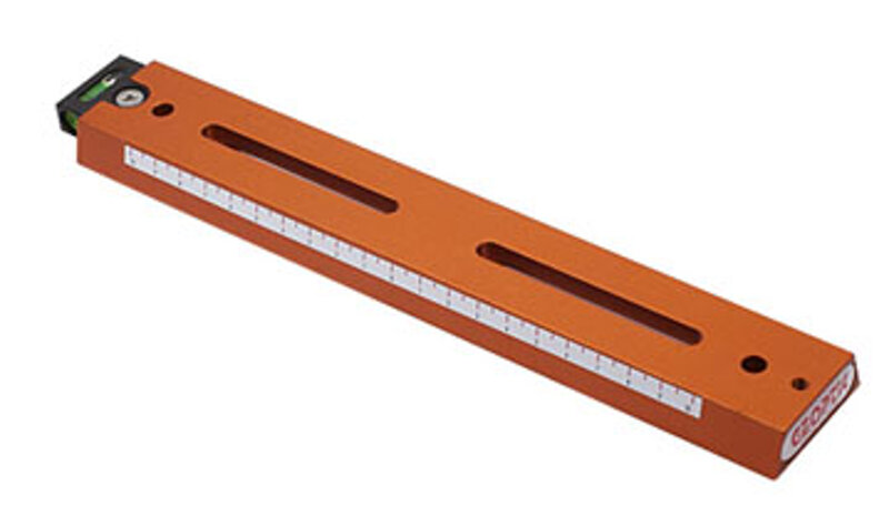 Con feritoia centrale e bolla di livello e scala millimetrata.
